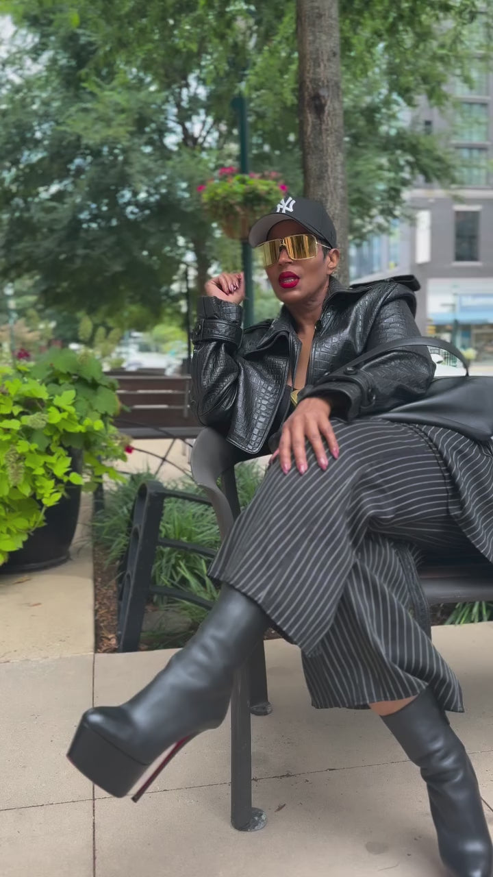 This crop leather jacket is all edge, all confidence.